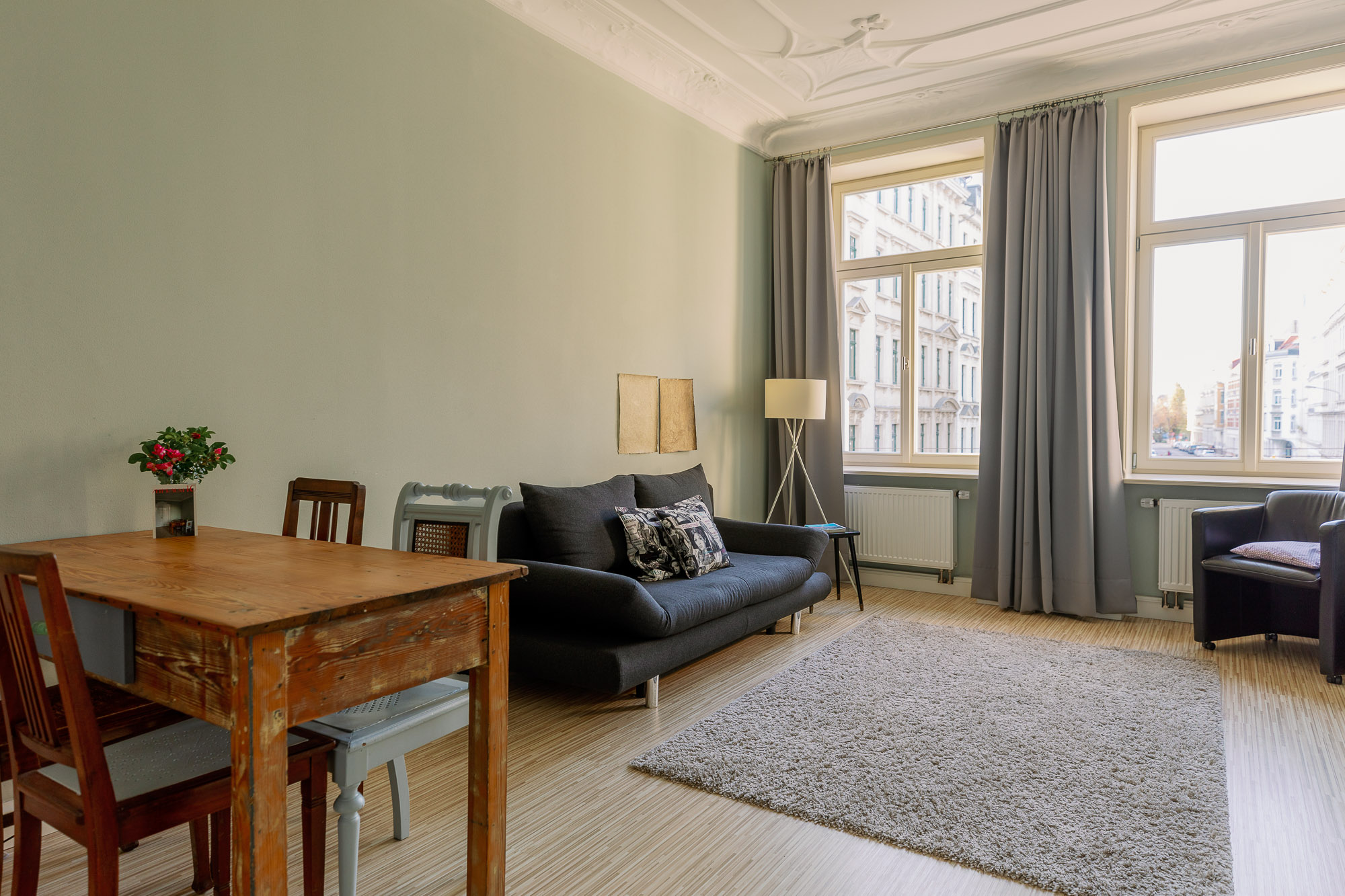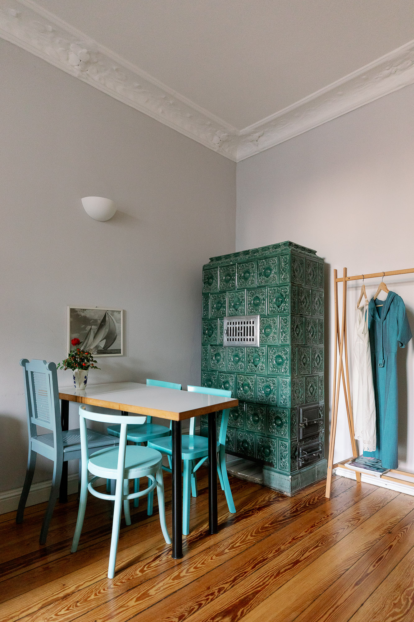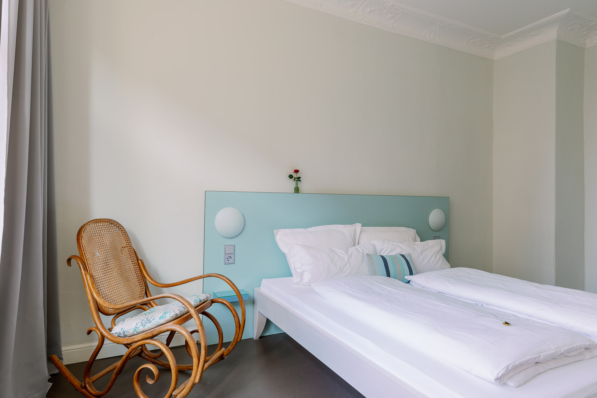 L’appartement Blau allie l’atmosphère d’autrefois au confort d’aujourd’hui. Le parquet d’origine, les stucs détaillés et le magnifique poêle en faïence de style Art nouveau confèrent à cet appartement une touche d’authenticité.
