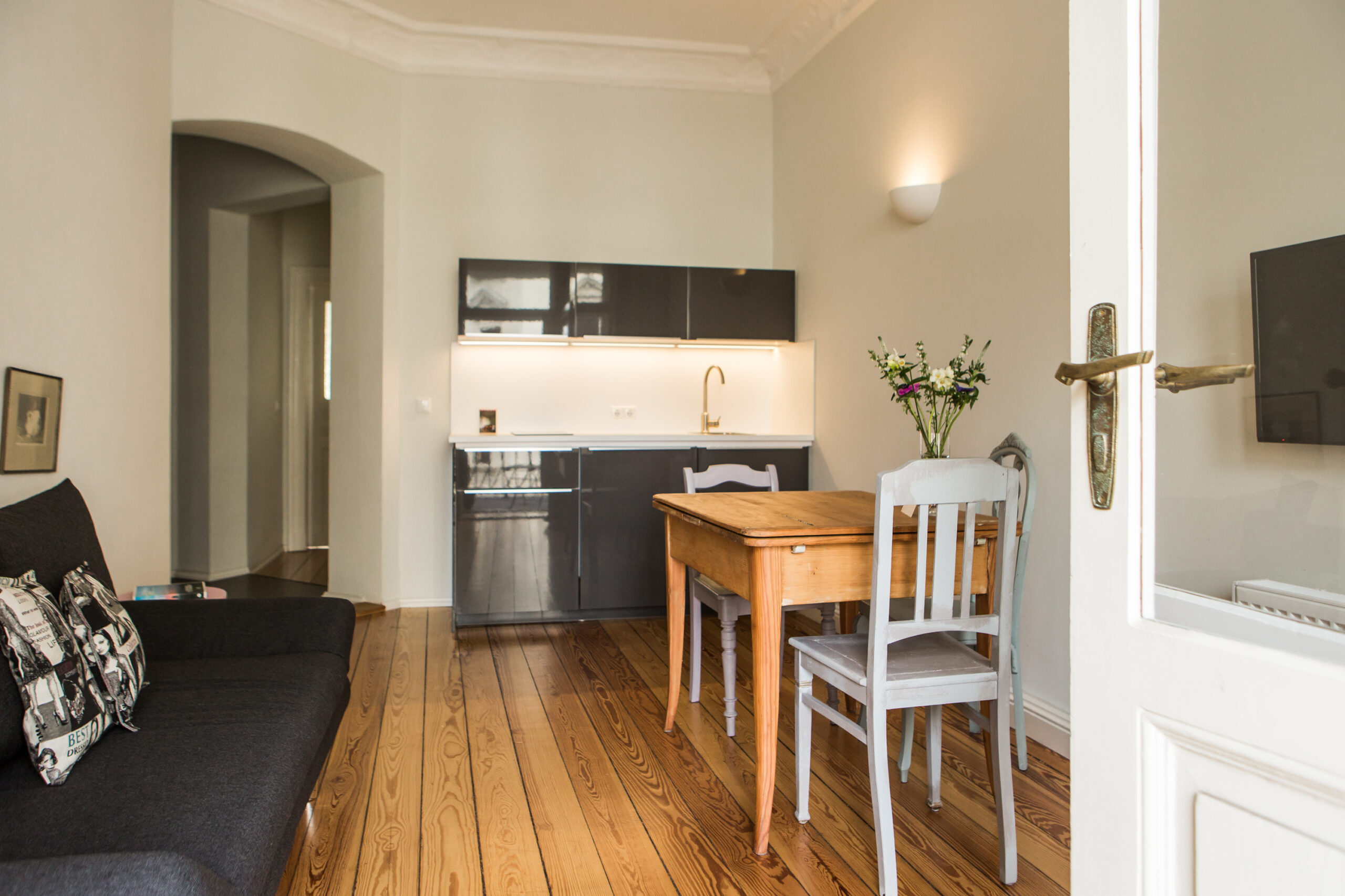 Avec ses trois chambres séparées, « Taube » est notre plus grand appartement et le seul à avoir conservé sa peinture d’origine sur les murs : il doit avoir environ 100 ans!
